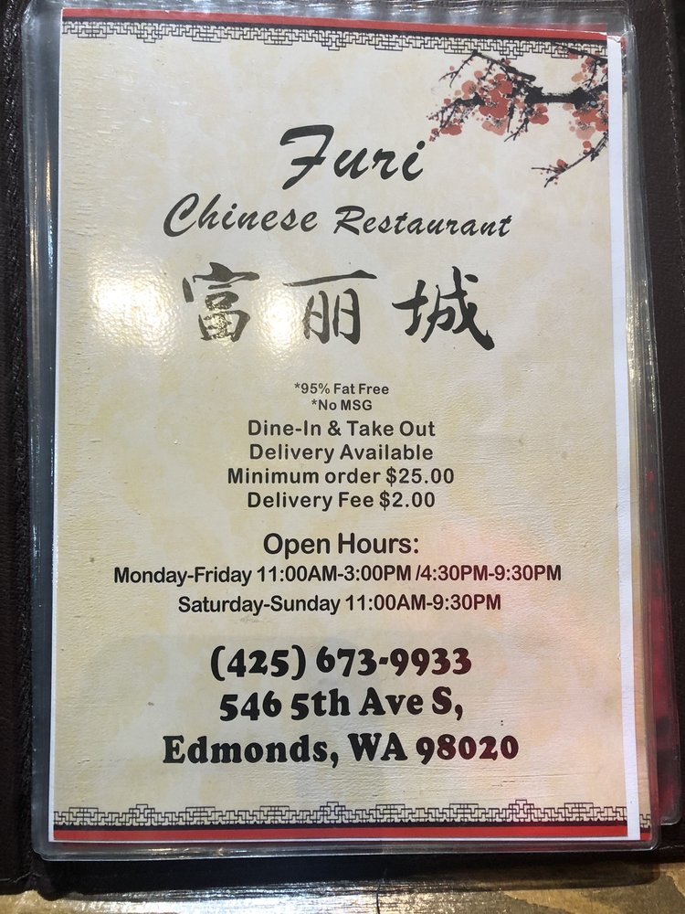 Welcome to Furi Chinese Restaurant, where the essence of Cantonese cuisine captures the heart of Edmonds, WA. Nestled at 546 5th Ave S, this casual eatery invites you to savor a delightful array of dishes perfect for all palates, including many vegetarian and vegan options. Whether you’re seeking a leisurely lunch or a relaxed dinner, Furi accommodates every occasion.